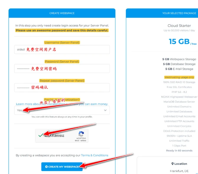 HubuHost是来自德国奥斯纳布吕克的一家初创公司DeepSheep推出的免费空间服务,服务器位置可选德国法兰克福和美国密苏里,每位用户可根据你的需求选择15-60GB容量大小的免费空间,采用RAID10固态硬盘,无限制流量,1Gbps带宽端口,DDoS保护,99.95%正常运行时间保障,自动部署免费SSL证书。HubuHost免费空间基于NGINX环境,支持PHP(可切换版本),可创建无限MySQL数据库(MariaDB),绑定域名数量、FTP数量、邮箱数量、Cronjobs数量均不做限制。